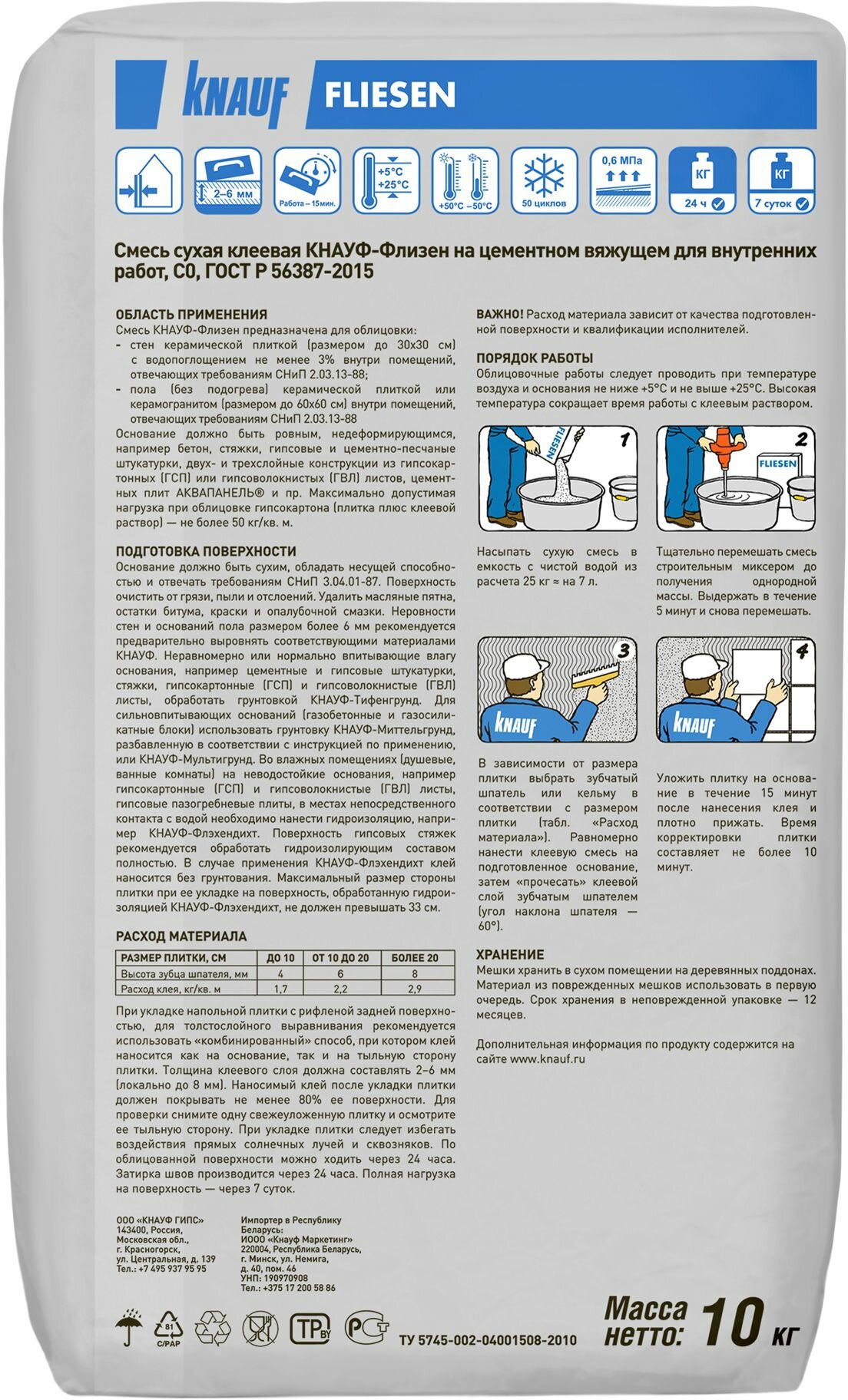 Ниже Вы можете прочитать отзывы на Плиточный клей цементный KNAUF Флизен 10 кг, ознакомится с подробными характеристиками, посмотреть интересные обзоры и фотографии на Плиточный клей цементный KNAUF Флизен 10 кг.
