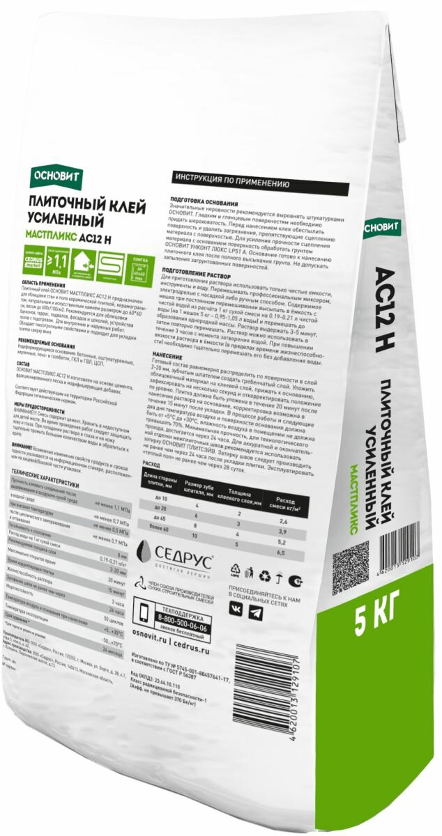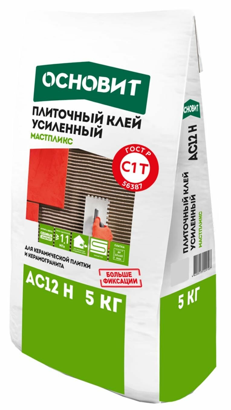 Клей плиточный усиленный основит мастпликс АС12 H, 5 кг интересное:
