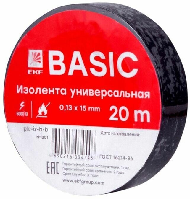 EKF Basic Изолента класс В (0,13х15мм) (20м.) черная