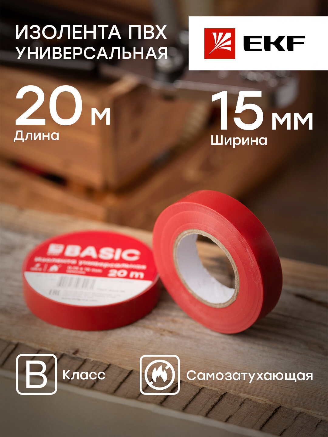 EKF Basic Изолента класс В (0,13х15мм) (20м.) красная