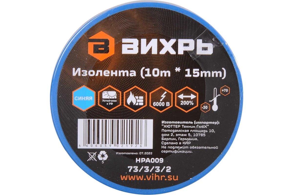 Изолента синяя (15мм*10м*0,15мм) (10шт) Вихрь