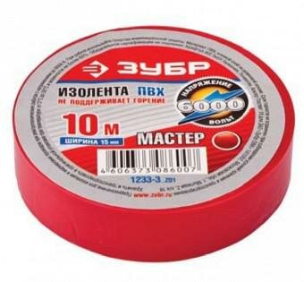 Изолента ПВХ, 15 мм х 10 м, красная Зубр 1233-3_z02