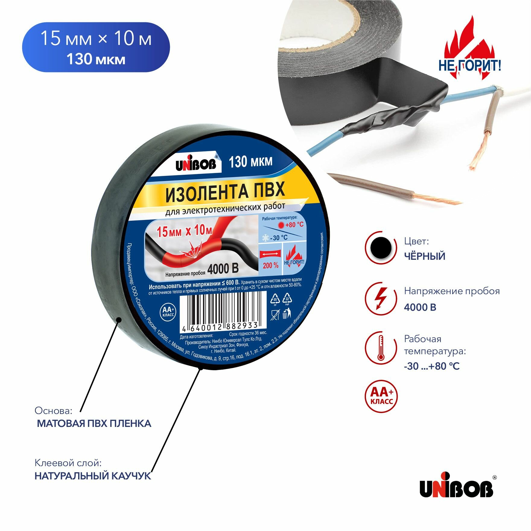 UNIBOB Изолента Пвх 15 мм Х 10 м Черная 130 мкм 211767