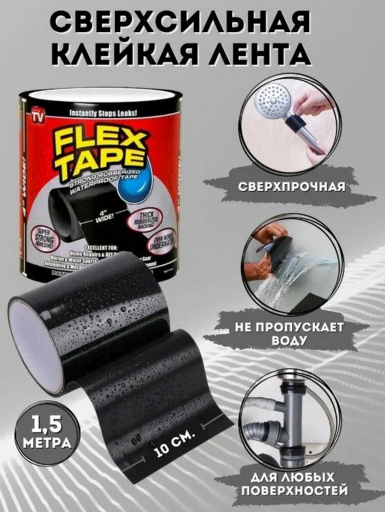 Купить Сверхсильная водостойкая клейкая лента Flex Tape Супер фикс 10х150 см, черная