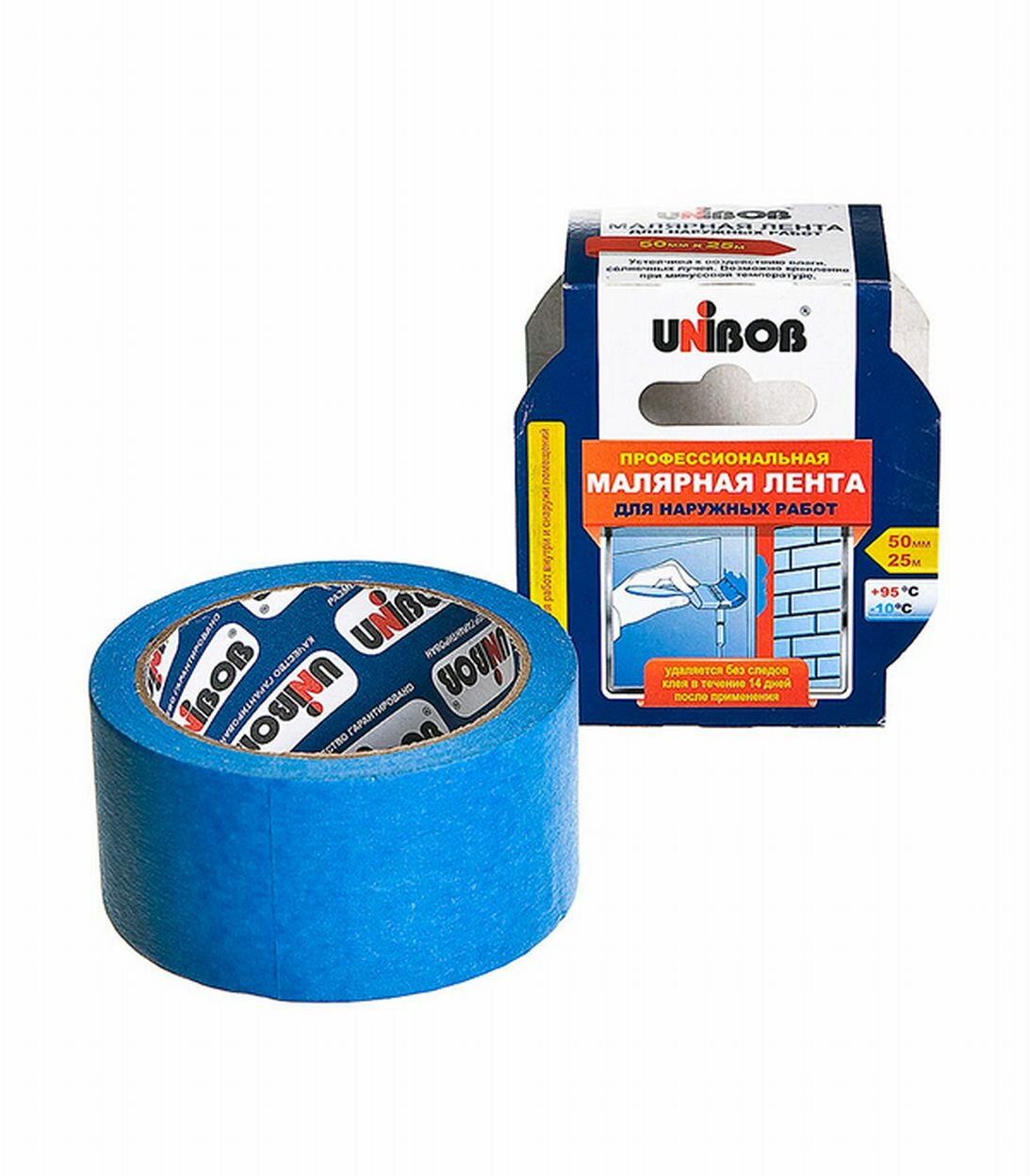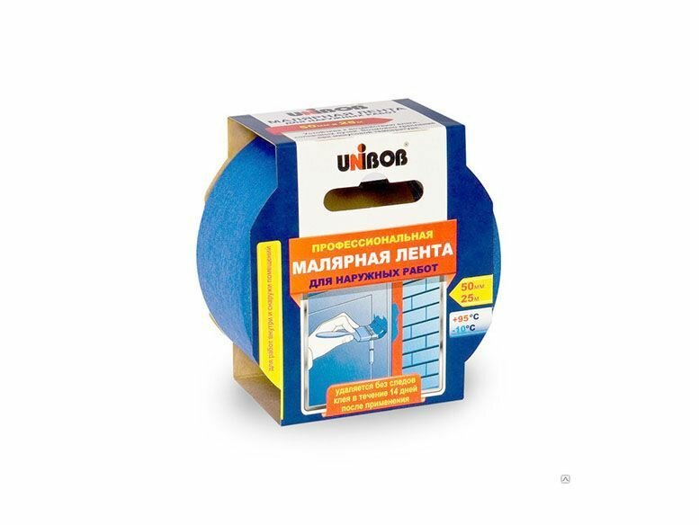 Лента малярная Unibob для наружных работ синяя 50 мм 25 м