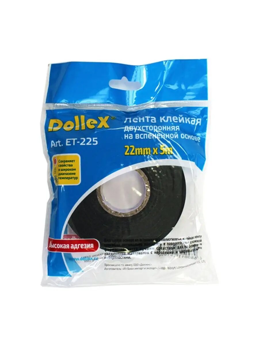 Скотч двухсторонний 22мм х 5м, лента клейкая монтажная на вспененной основе DolleX ET-225