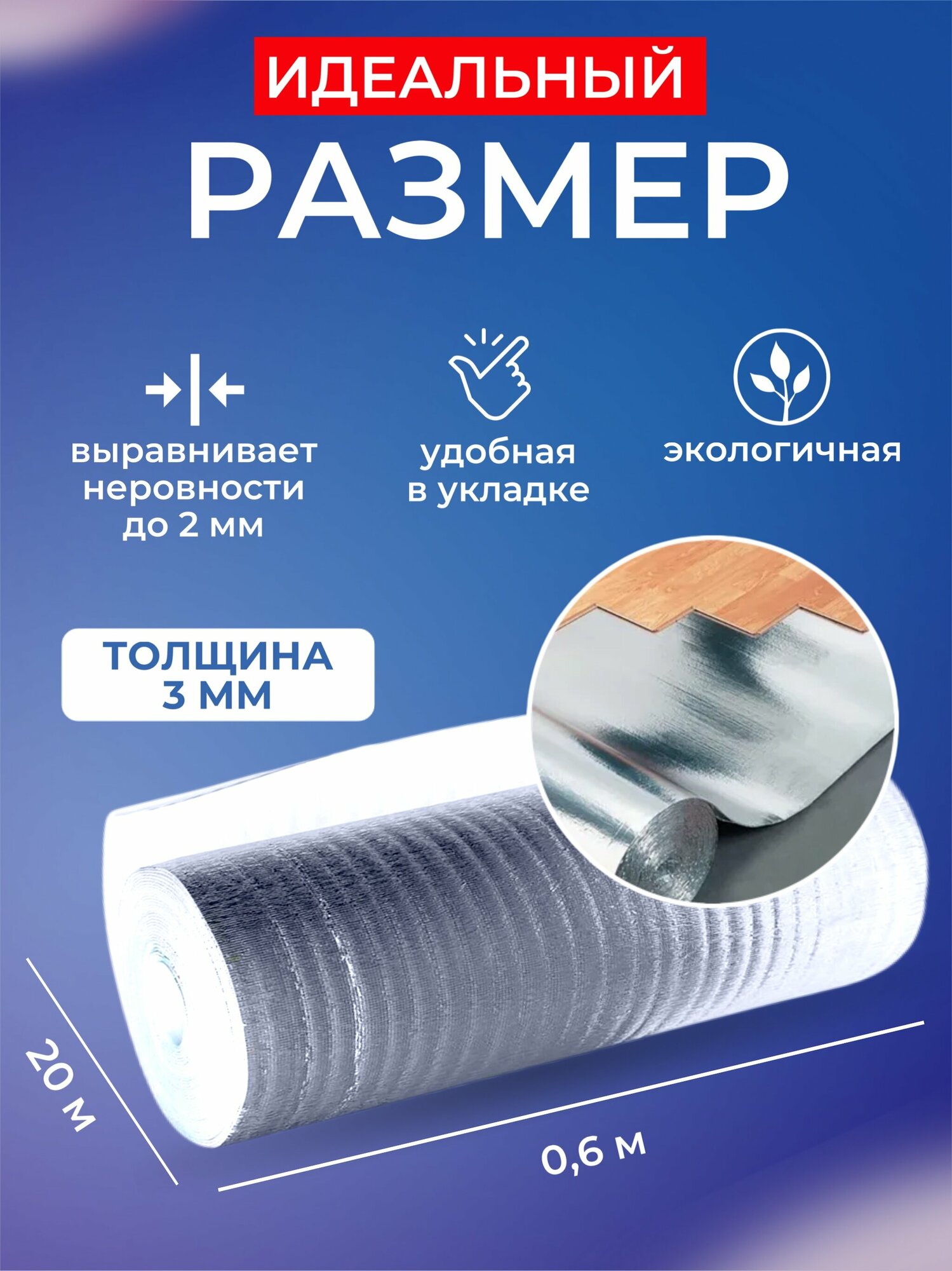 Ниже Вы можете прочитать отзывы на Подложка фольгированная самоклеющаяся 3мм 0,6м х 20м (12м2), ознакомится с подробными характеристиками, посмотреть интересные обзоры и фотографии на Подложка фольгированная самоклеющаяся 3мм 0,6м х 20м (12м2).