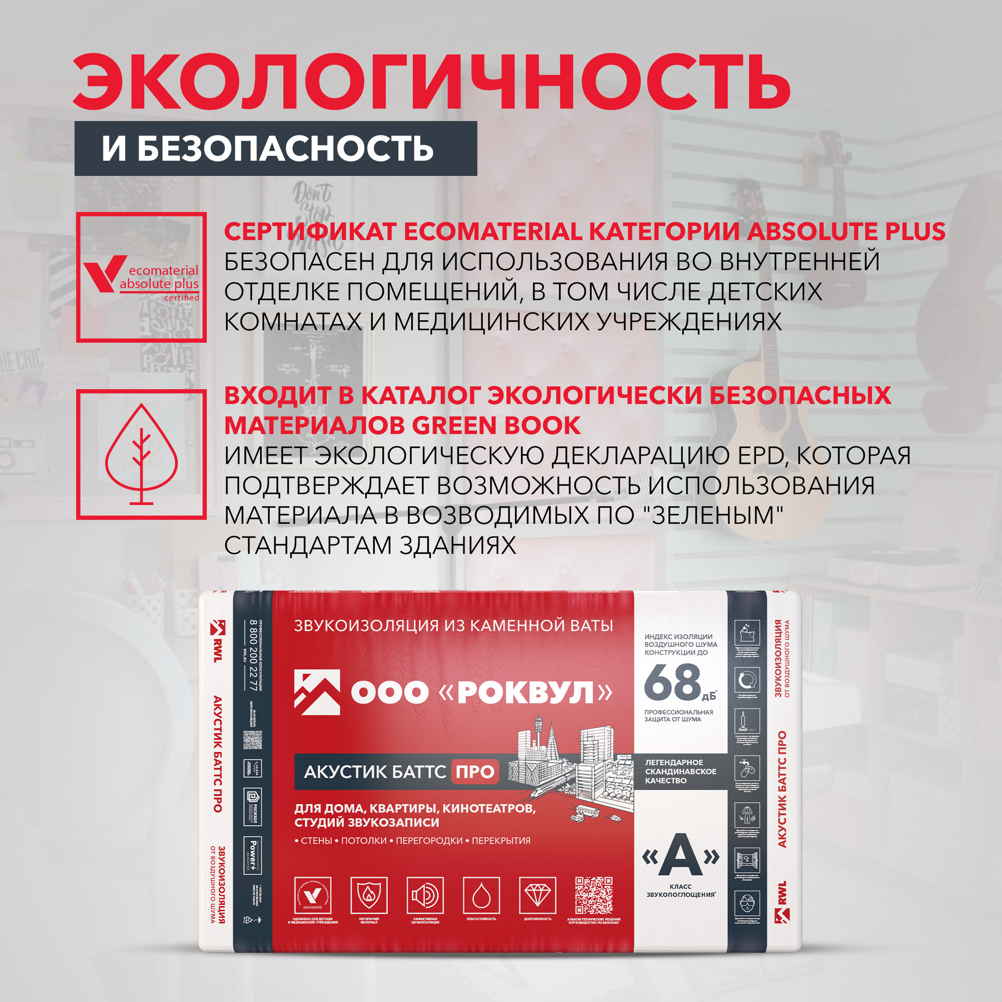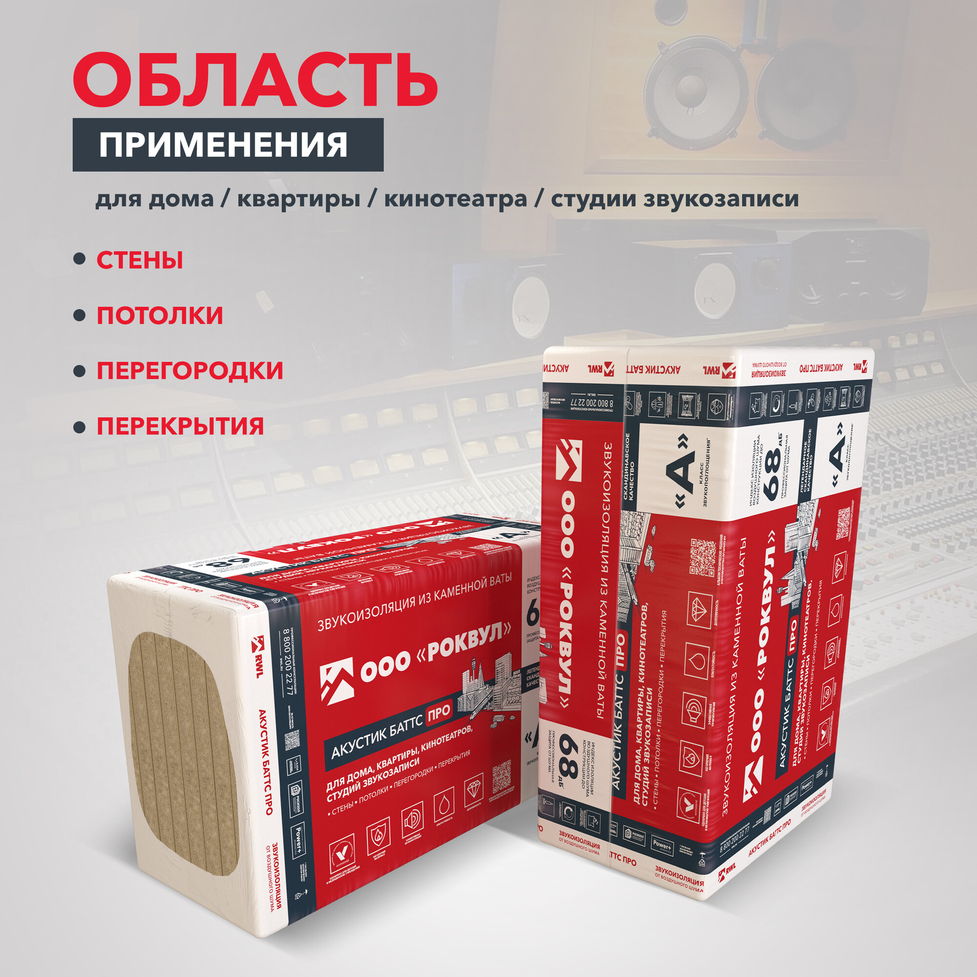 Звукоизоляция Роквул Акустик Баттс про, 50 мм 1 упак 8 плит 4,8м2 0,24м3 интересное: