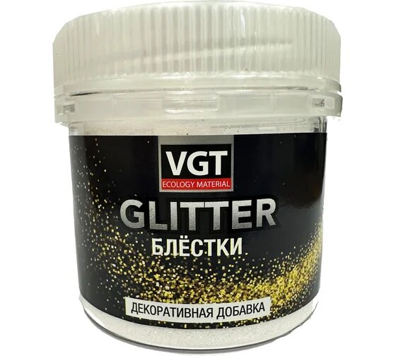Декоративная добавка VGT Glitter, добавка для строительной смеси, колеровочная краска, серебро 0.05 кг
