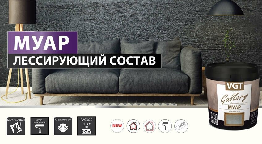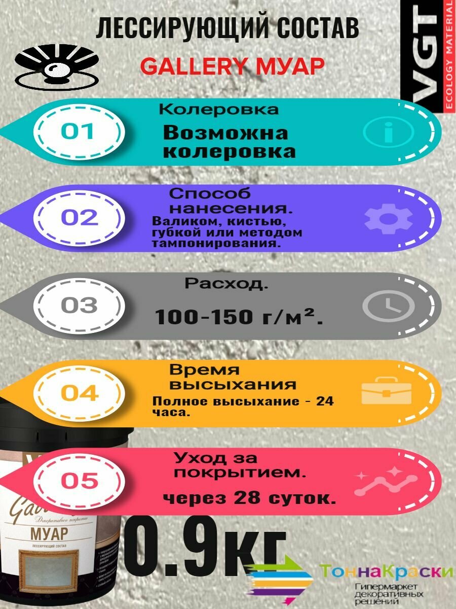 VGT GALLERY / ВГТ Гэлэри муар состав лессирующий, полупрозрачный, pearl (0.9 кг), Фактурная, Для внутренних и наружных работ, для Дерева и Штукатурки, Влагостойкий