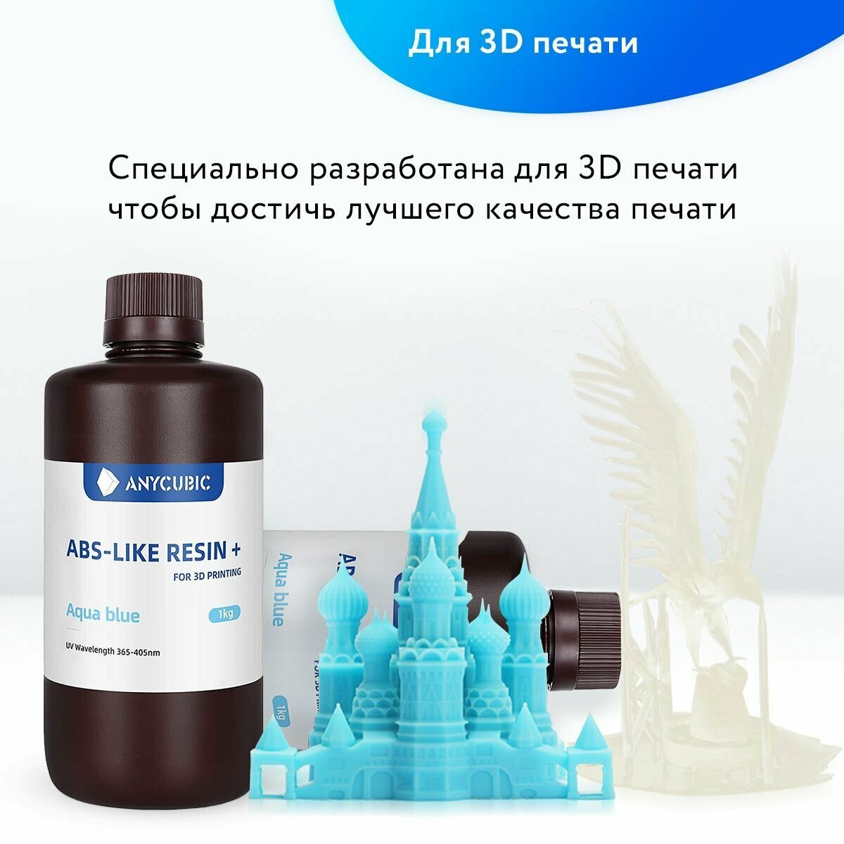 Фотополимерная смола Anycubic ABS+ LIKE Resin + UV Resin для 3D принтера 405нм Белый (White) 1 литр