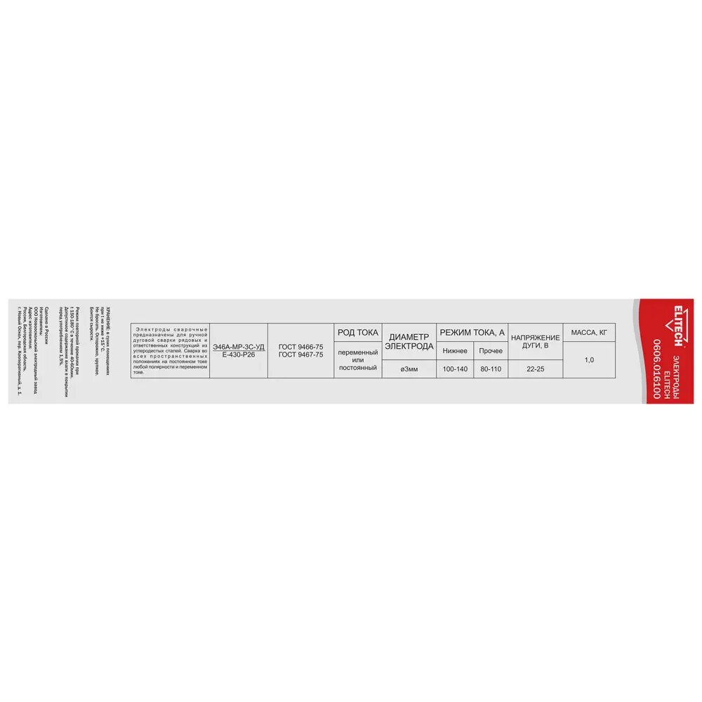 Электроды ELITECH 0606.016100, МР-3С, Ø3мм (уп. 1кг) (арт. 184794)