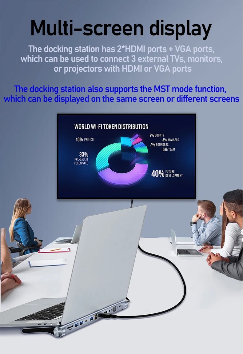 Купить Многопортовый концентратор Type-C для ноутбуков, 12 IN 1