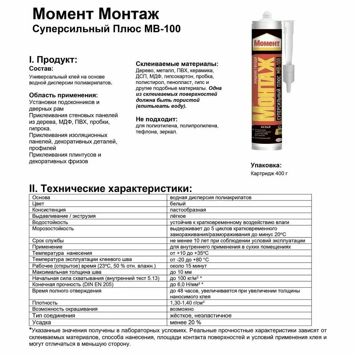 Монтажный клей Момент Монтаж Суперсильный Плюс МВ-100 (380 г) 0.4 л 2 шт .