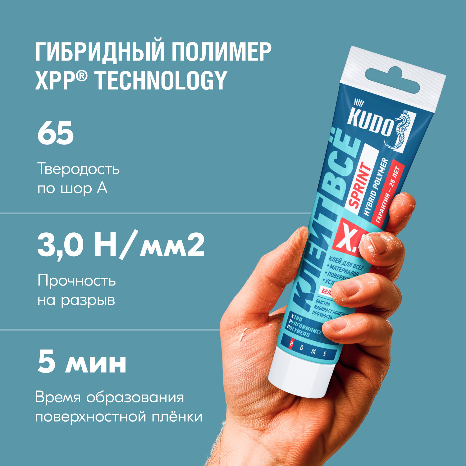 Жидкие гвозди KUDO клеит ВСЁ SPRINT KXT-4W, клей c высокой скоростью отверждения, на основе гибридных мс полимеров, белый интересное: