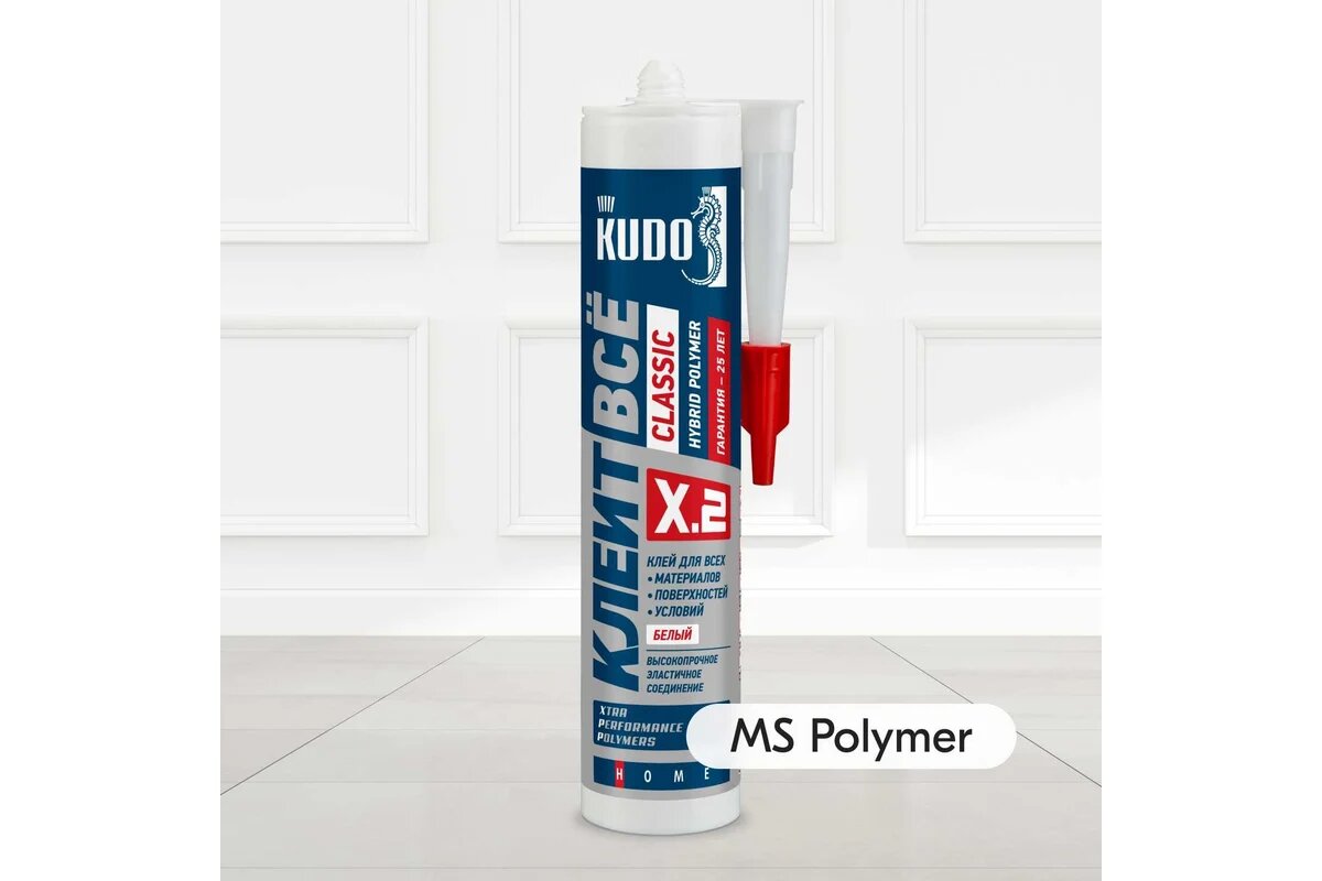 Клей-герметик KUDO клеит ВСЁ CLASSIC KX-2W, Жидкие гвозди + герметик, на основе гибридных мс полимеров, белый