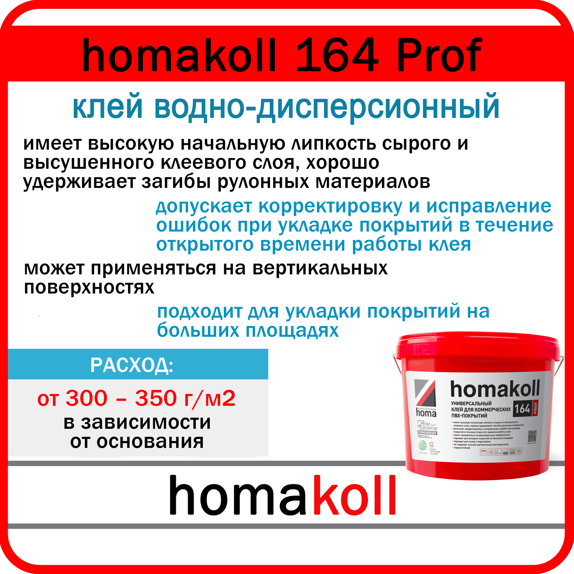 Клей для коммерческих ПВХ-покрытий универсальный homakoll 164 Prof 10 кг