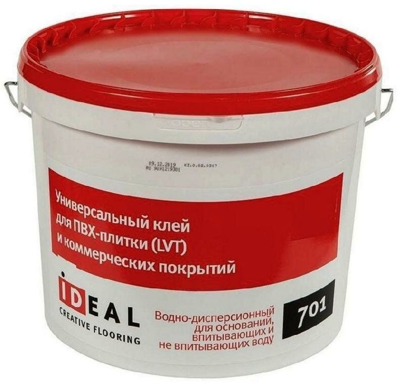 Клей для ПВХ-плитки "iDEAL CREATIVE FLOORING 701" 10кг. для фиксации к основанию гетеро- и гомогенных напольных ПВХ покрытий