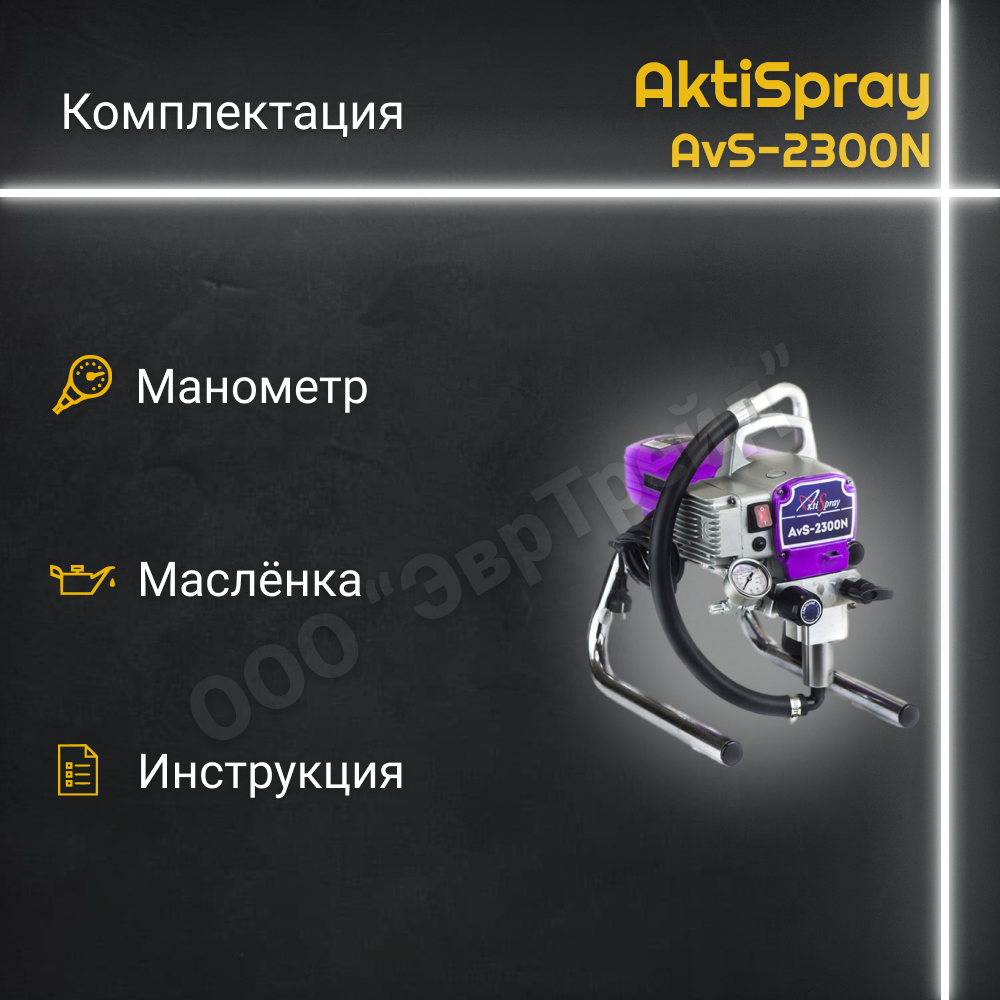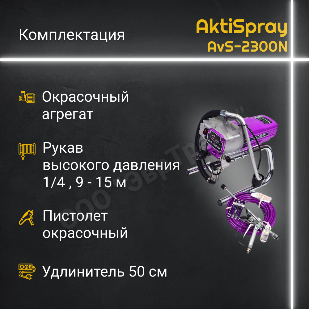 Аппарат окрасочный AktiSpray AvS-2300N, комплект (2,3 л/мин, 220 бар, 1500 Вт, 220 В, 50 Гц)