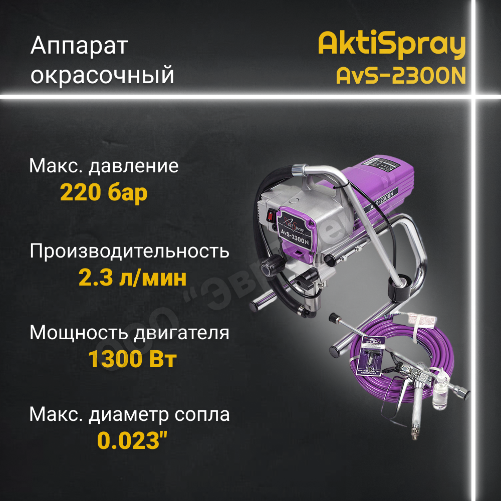 Аппарат окрасочный AktiSpray AvS-2300N, комплект (2,3 л/мин, 220 бар, 1300 Вт, 220 В, 50 Гц) интересное: