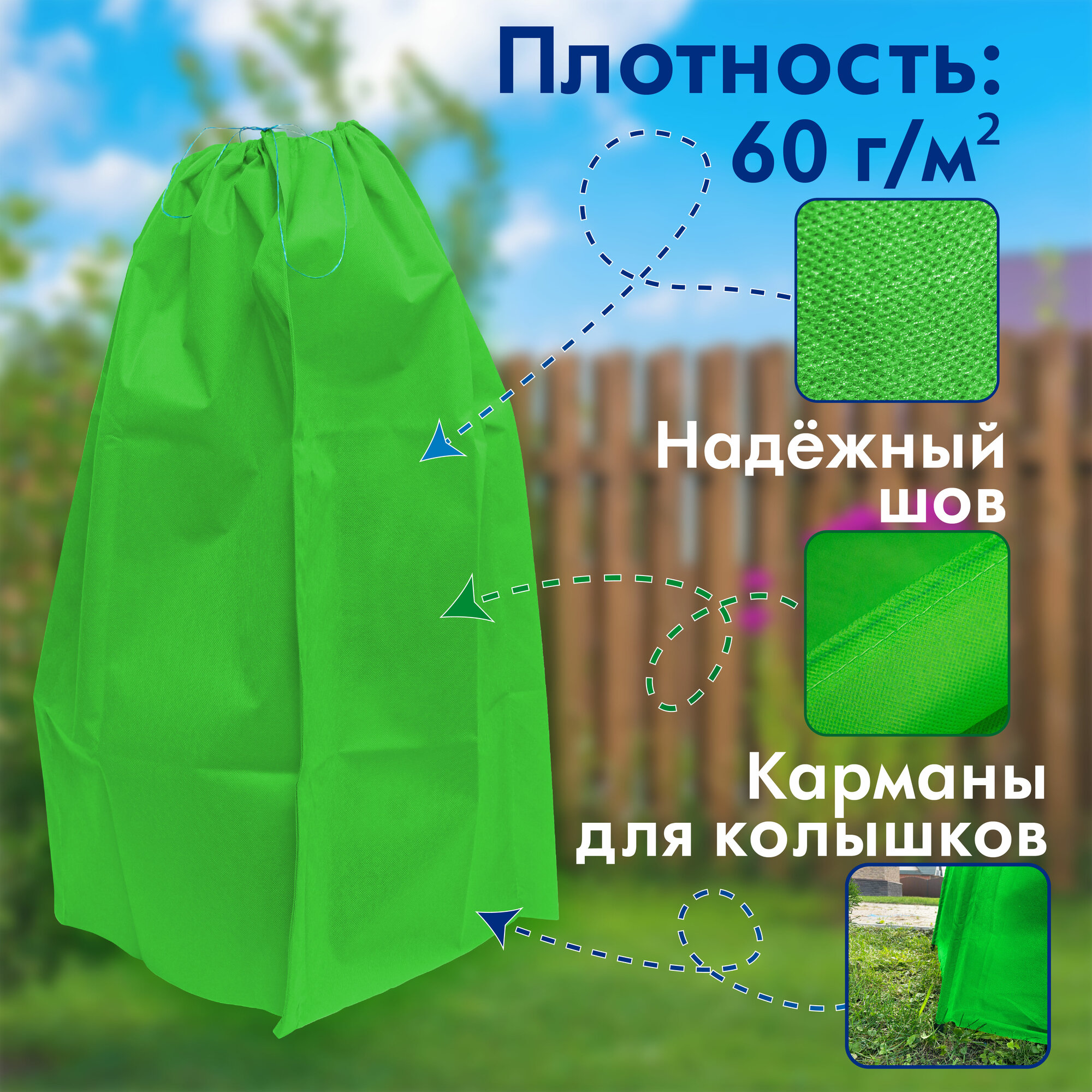 Укрывной материал для растений, чехол прямоугольный на молнии, высота 1,6 м, диаметр 1,2 м