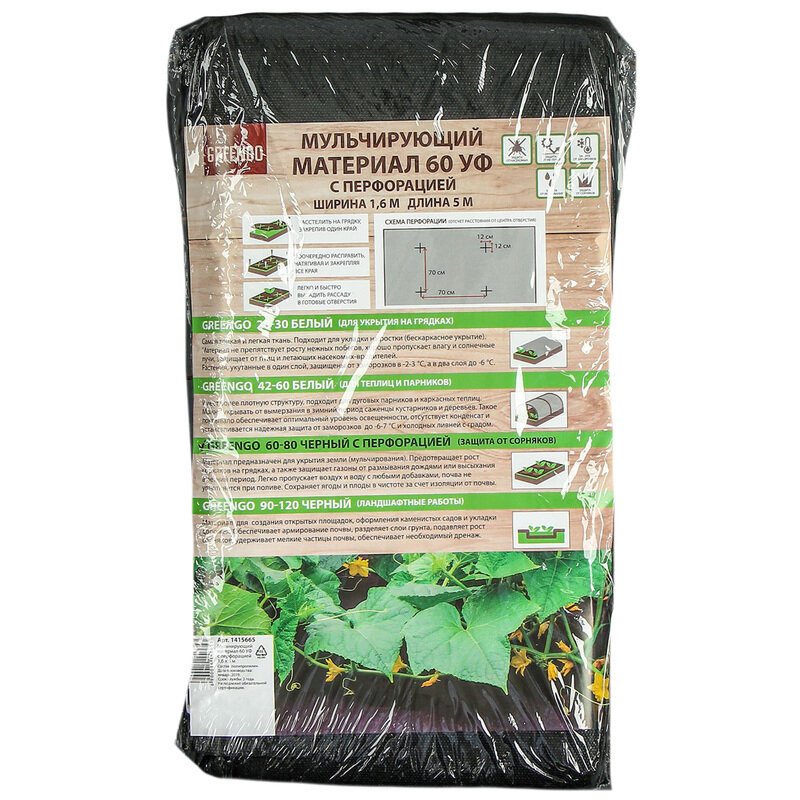 Greengo Материал мульчирующий, 5 × 1.6 м, плотность 60 г/м², спанбонд с УФ-стабилизатором, чёрный, Greengo, Эконом 30%