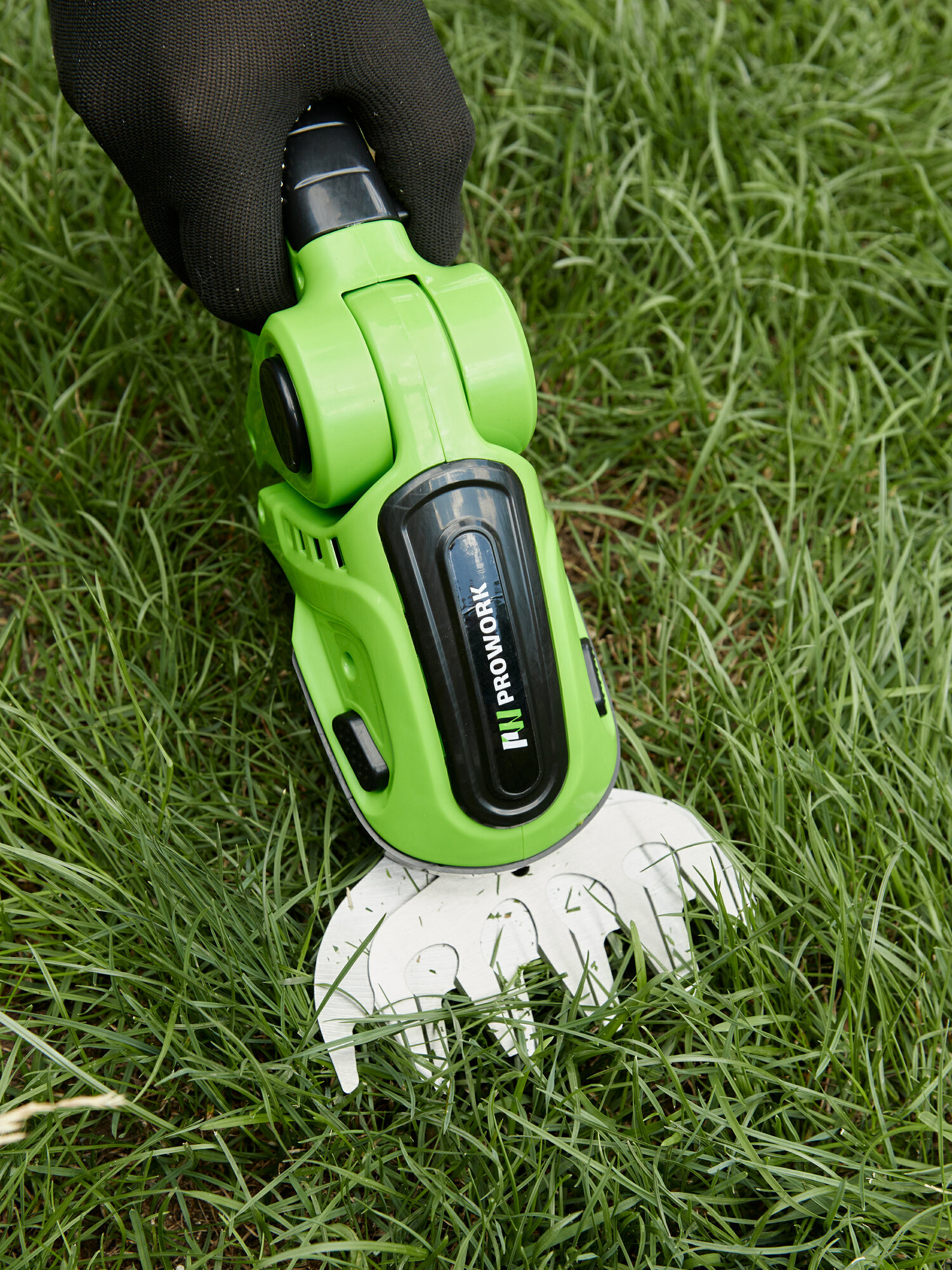 Купить Садовый кусторез аккумуляторный/ аккумуляторные ножницы садовые/кусторез электрический/Мощный триммер для травы PROWORK/перчатки/ 2 насадки для кусов и травы