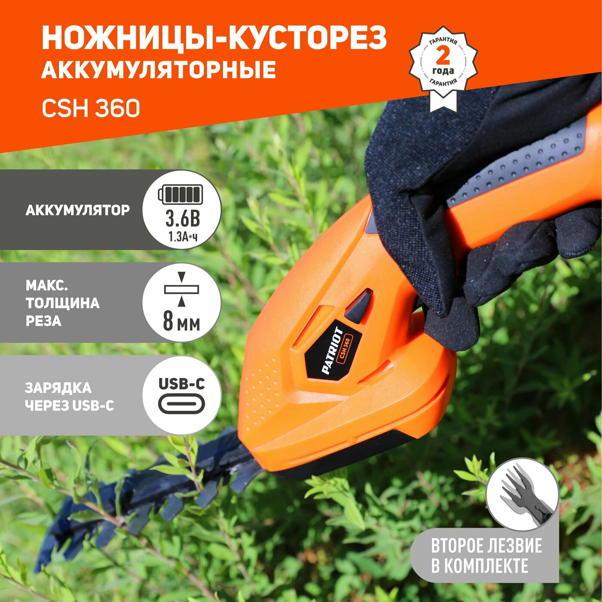Кусторез аккум, "PATRIOT" CSH 360, 12 см, 3,6 В, 1,3 Ач Li-ion интересное: