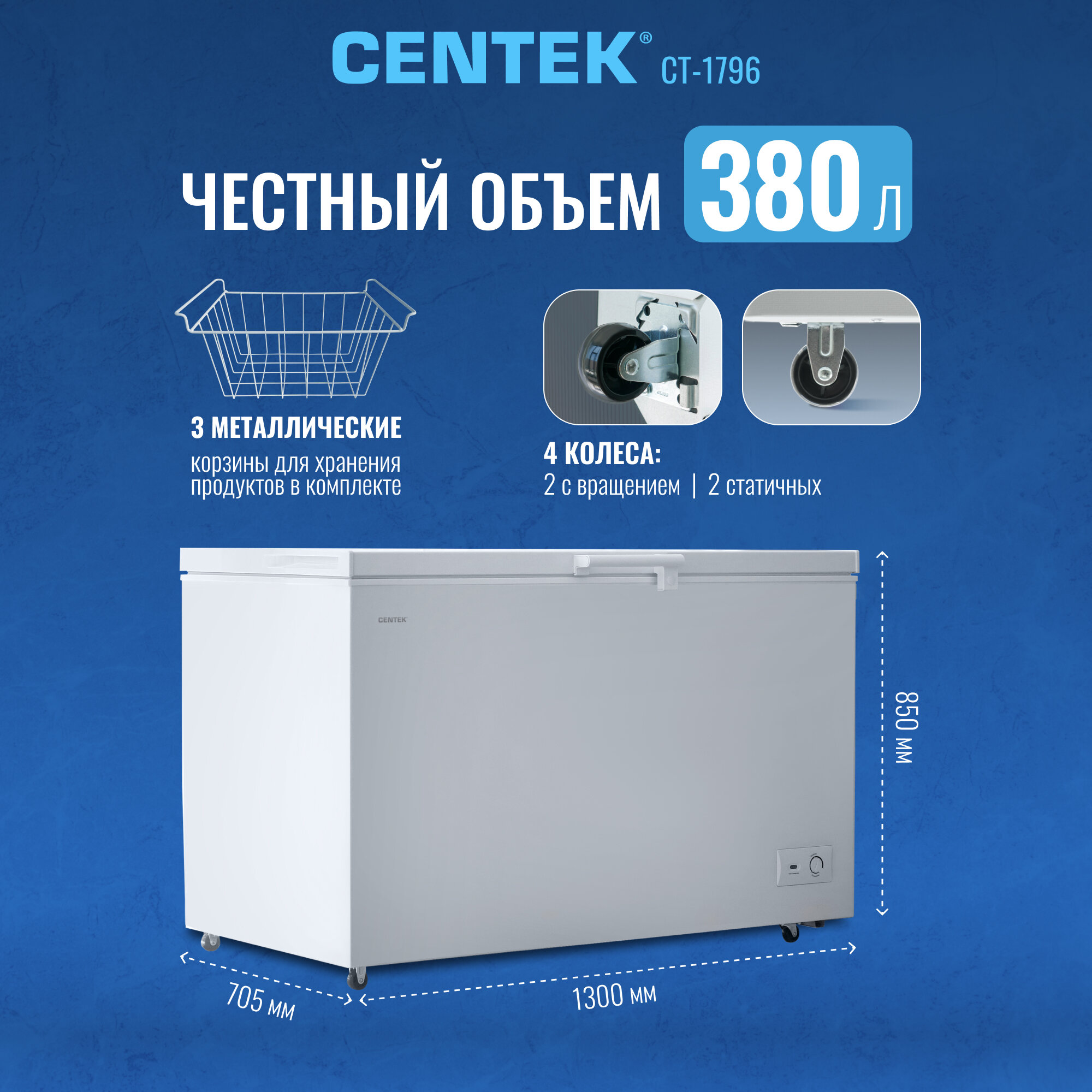 СохранитьМорозильная камера для дома CENTEK CT-1796: 380л /2 в 1 ларь-холодильник/3 корзины/A/4 колеса интересное: