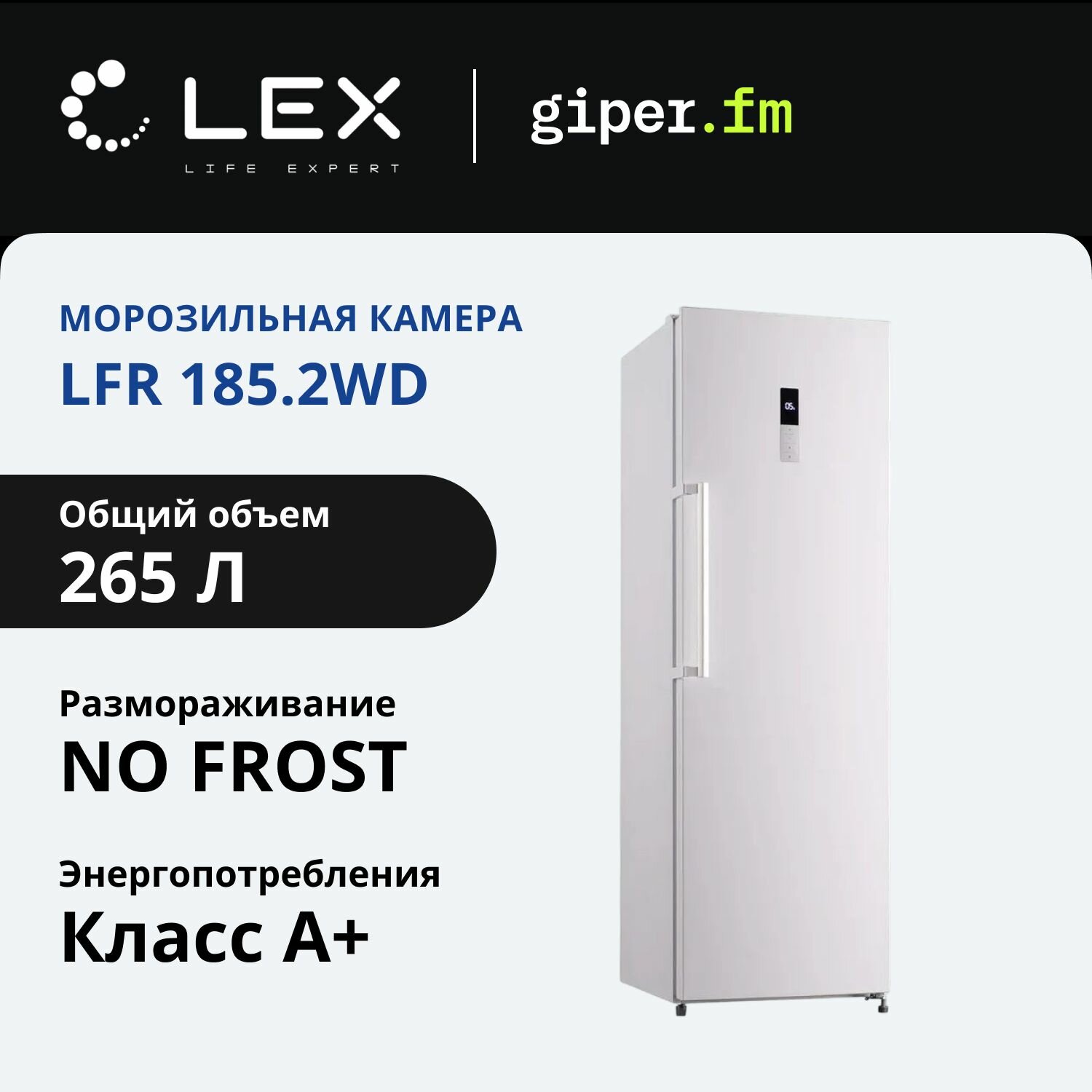 Отдельностоящий морозильный шкаф LEX LFR185.2WD,Электронное управление, Сигнал о высокой температуре, Суперзаморозка.