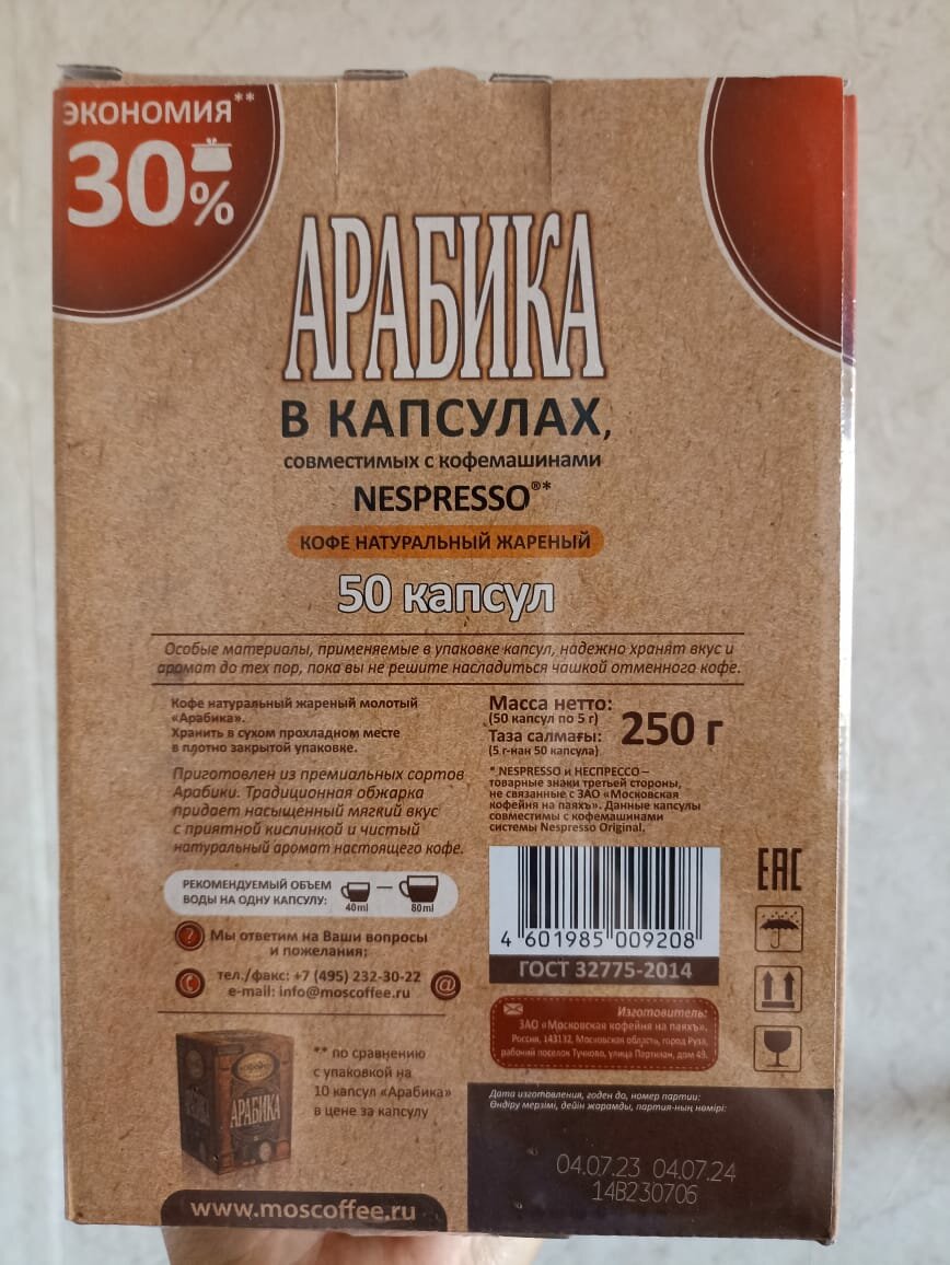 СохранитьКофе в капсулах Московская кофейня на паяхъ Арабика, 50 порций, 50 кап. в уп., интересное: