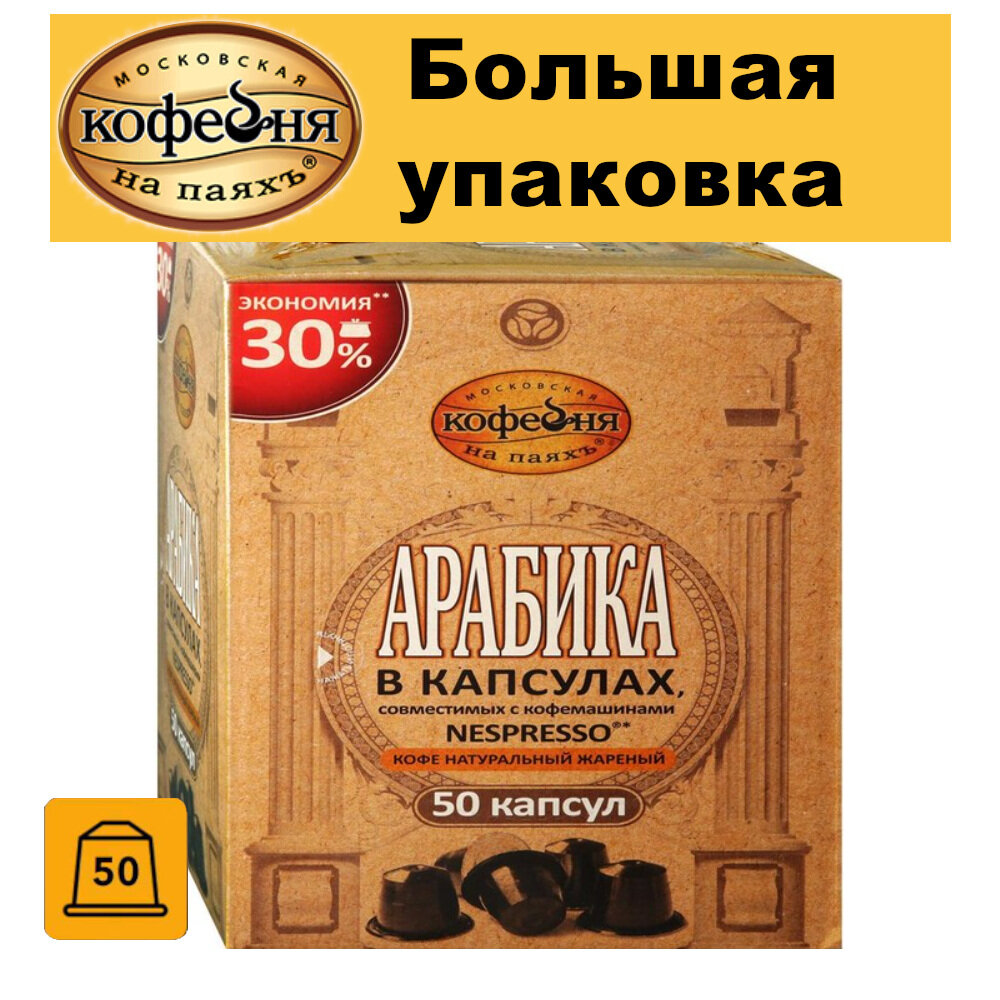 Купить Кофе в капсулах Московская кофейня на паяхъ Арабика, 50 порций, 50 кап. в уп.,