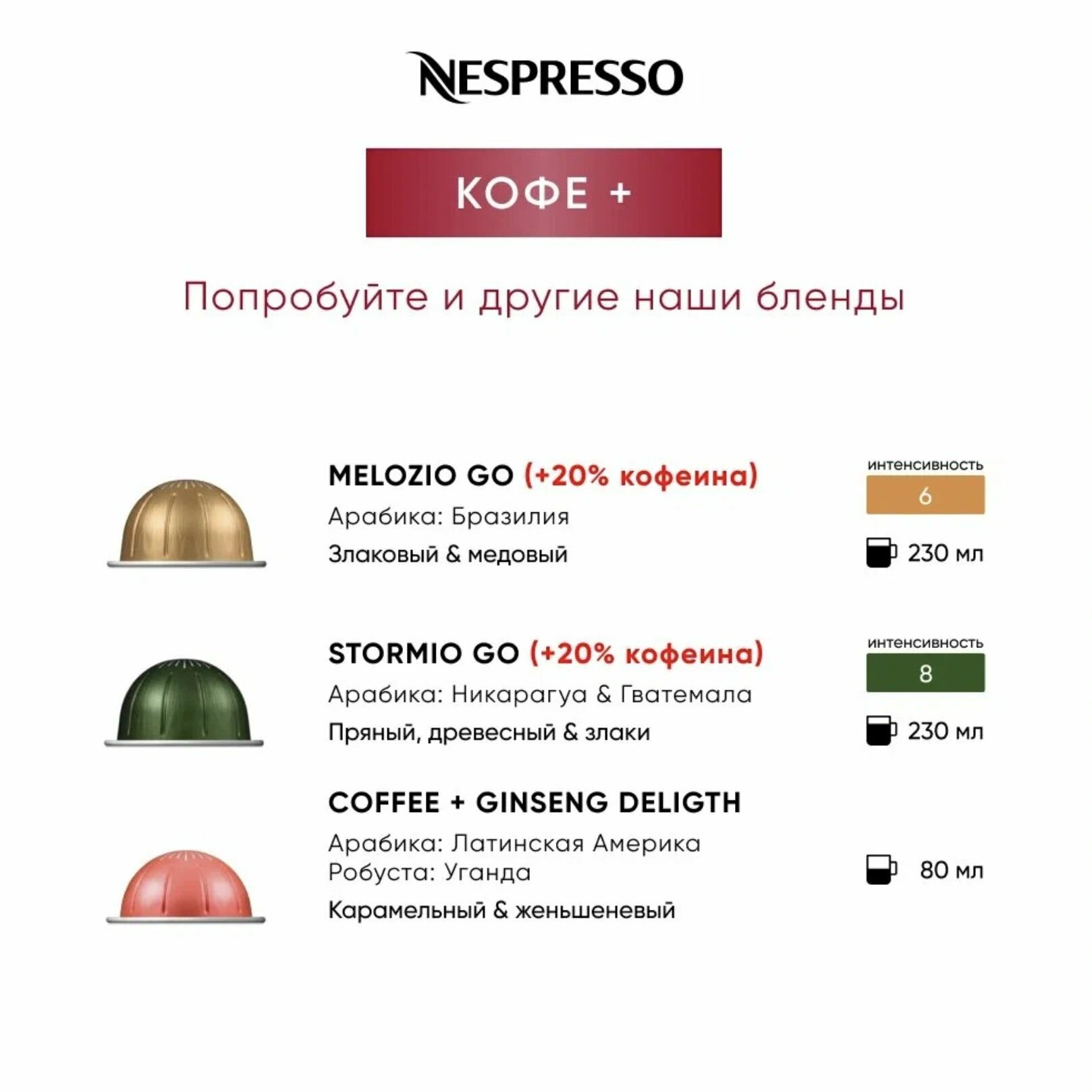 Кофе в капсулах Nespresso Vertuo Ginseng Delight , 80 ml, 1 упаковка 10 капсул