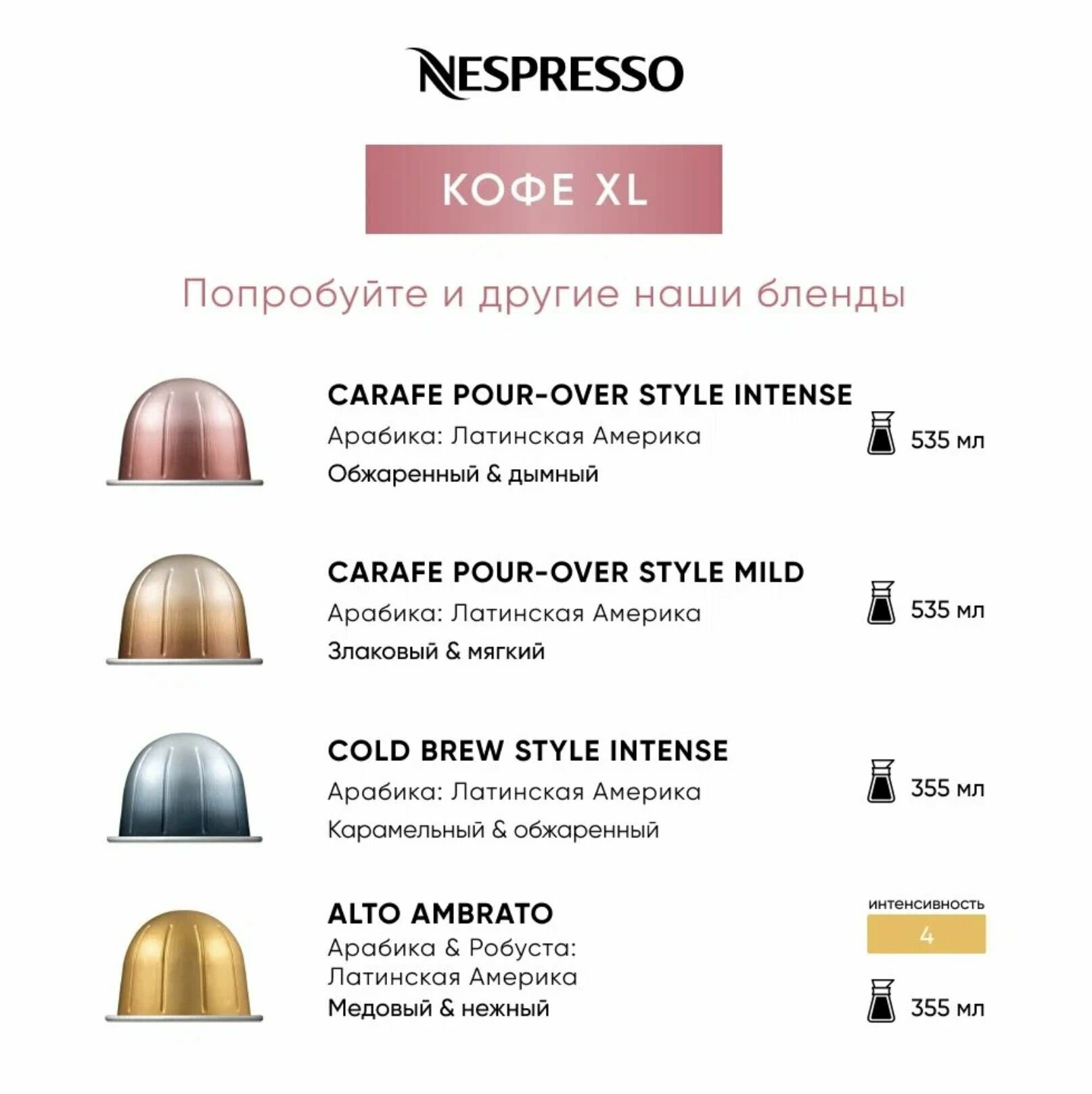 Infiniment Gourmand - кофе в капсулах Nespresso Vertuo