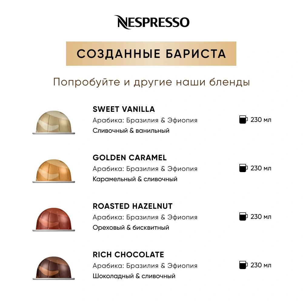 Кофе в капсулах, Nespresso, Vertuo SWEET VANILLA, натуральный, молотый кофе в капсулах, для капсульных кофемашин, оригинал (10 капсул в упаковке)