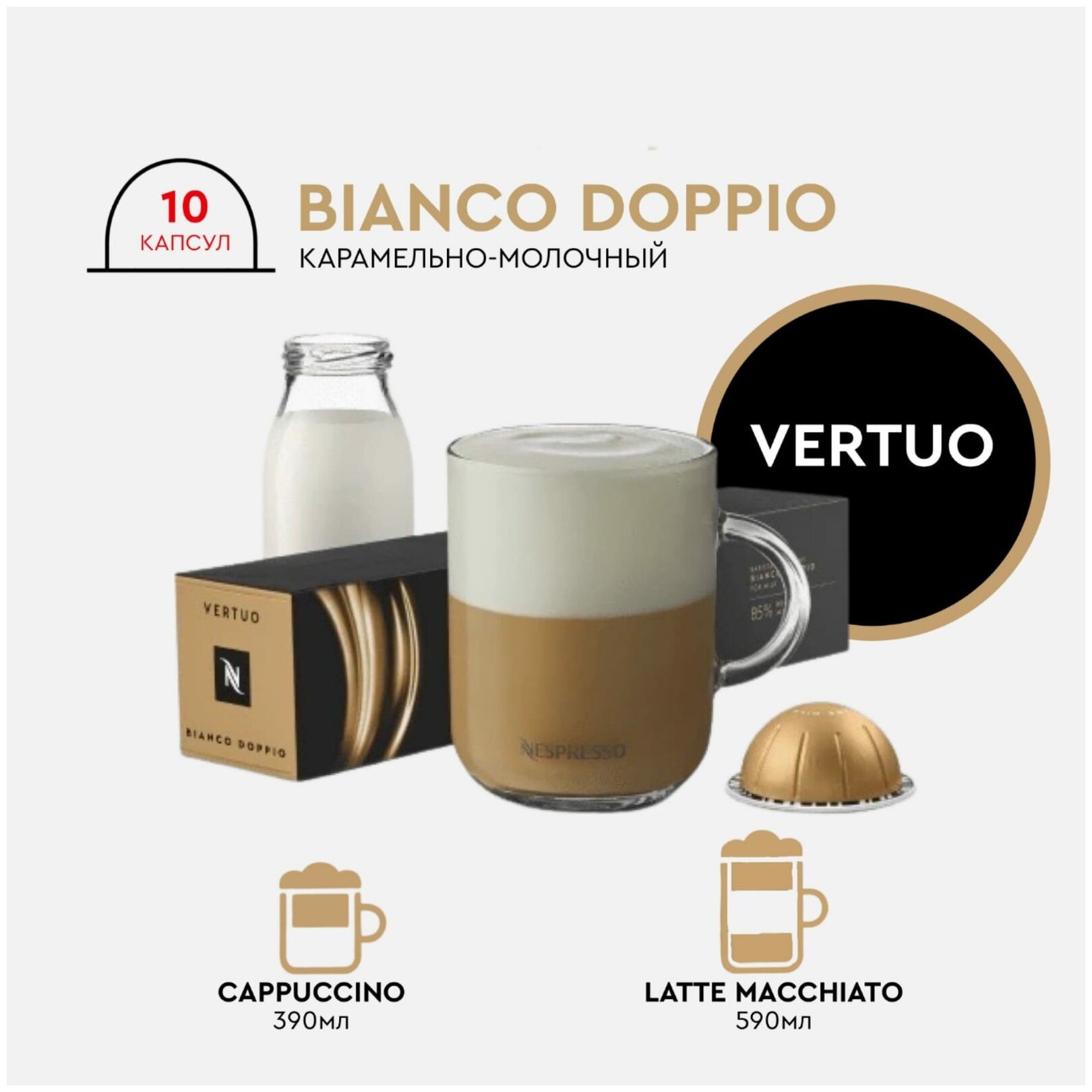 Кофе в капсулах Nespresso Vertuo, Bianco Piccolo, натуральный, молотый кофе в капсулах, 10шт