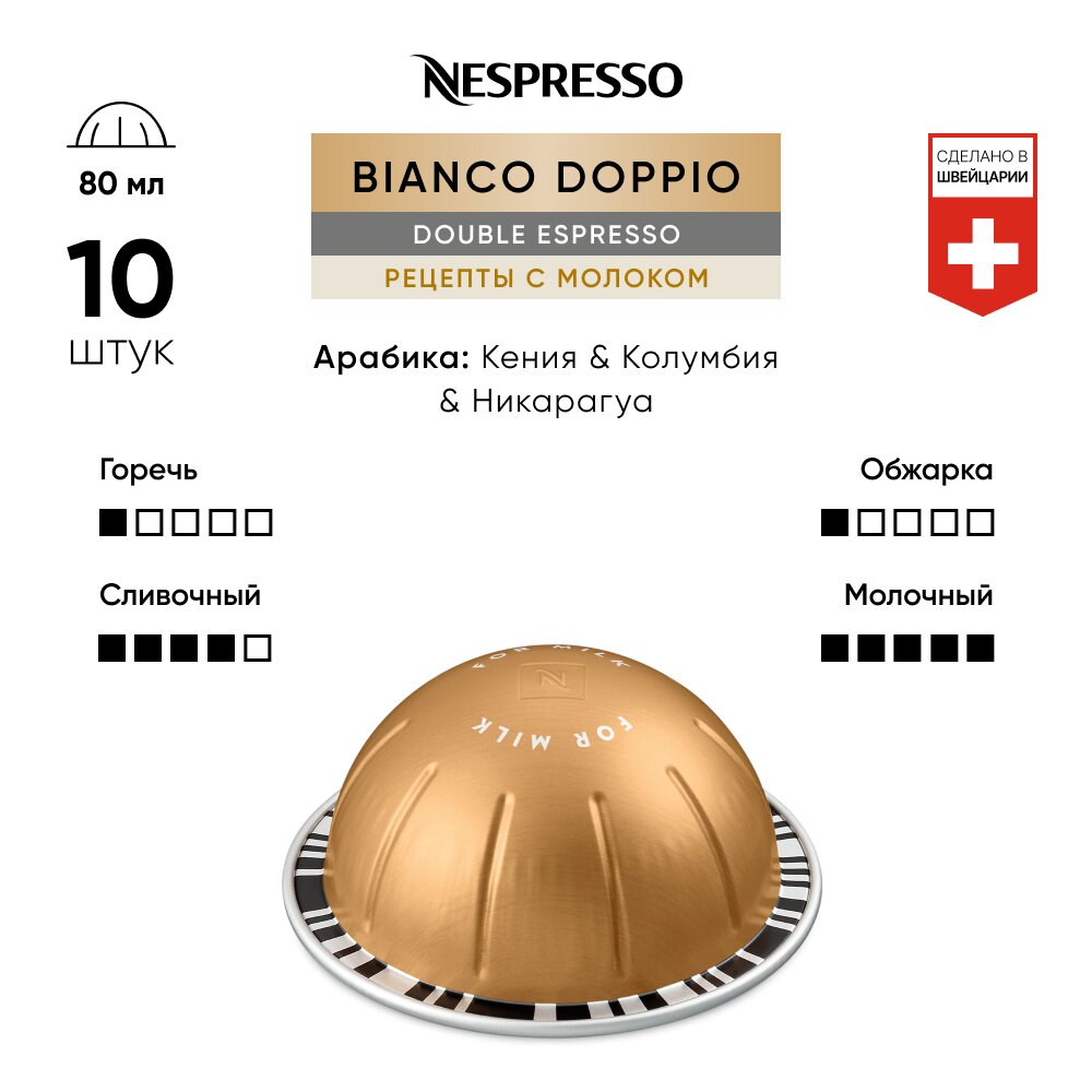 Кофе Nespresso Vertuo DOUBLE ESPRESSO BIANCO DOPPIO в капсулах, 10 шт.