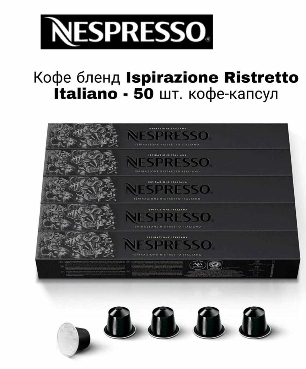 Кофе в капсулах Nespresso Ispirazione Ristretto Italiano, 10 кап. в уп., 5 уп.