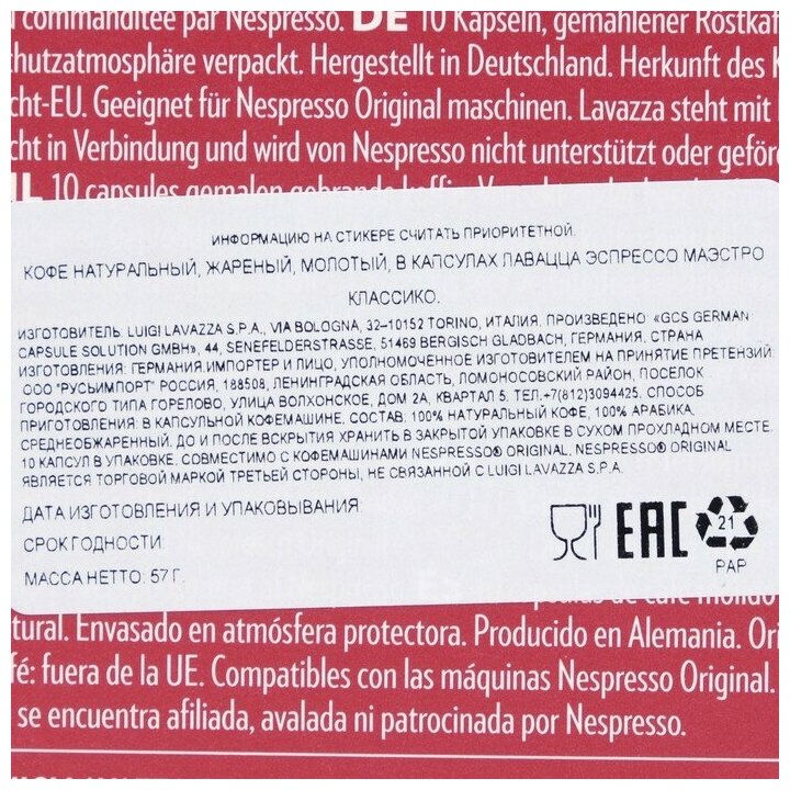 Кофе в капсулах Nespresso Lavazza Classico 10 шт интересное:
