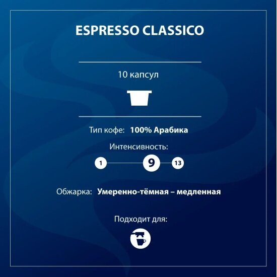 Кофе в капсулах "Espresso Classico" ALU Lavazza, арабика, 9 интенсивность, 10шт.