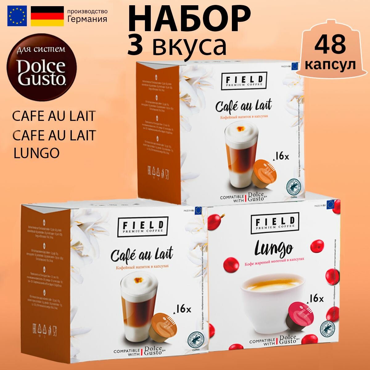 Кофе капсулы Field Dolce Gusto Latte macchiato Cafe au Lait Cappuccino набор 48шт