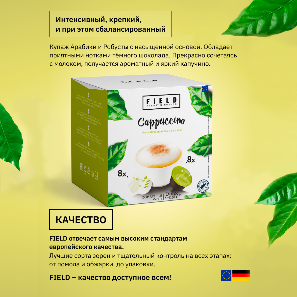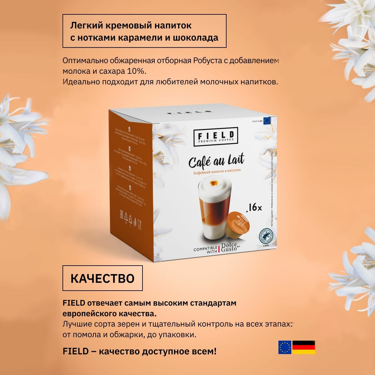 Купить Кофе капсулы Field Dolce Gusto Cafe au Lait Cappuccino Lungo набор 64шт
