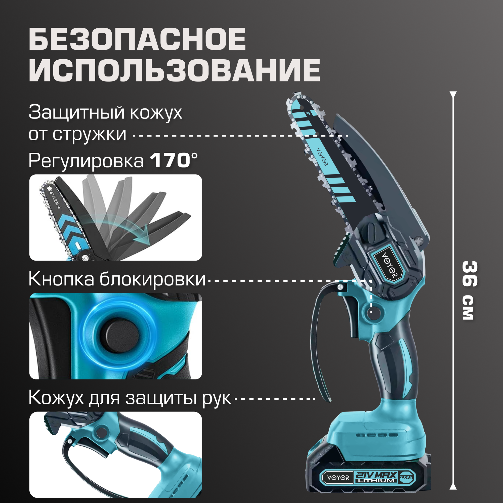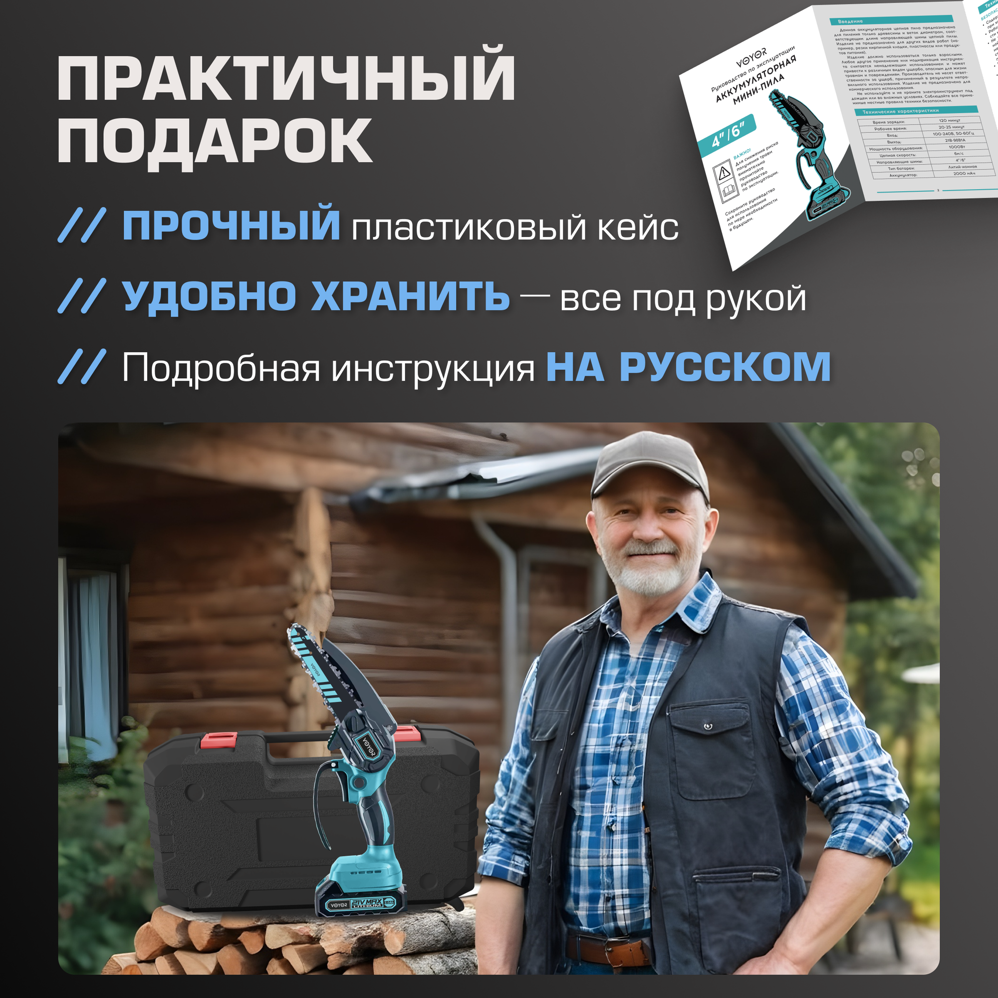 Пила аккумуляторная цепная в кейсе с кожухом, мини-пила мощная интересное: