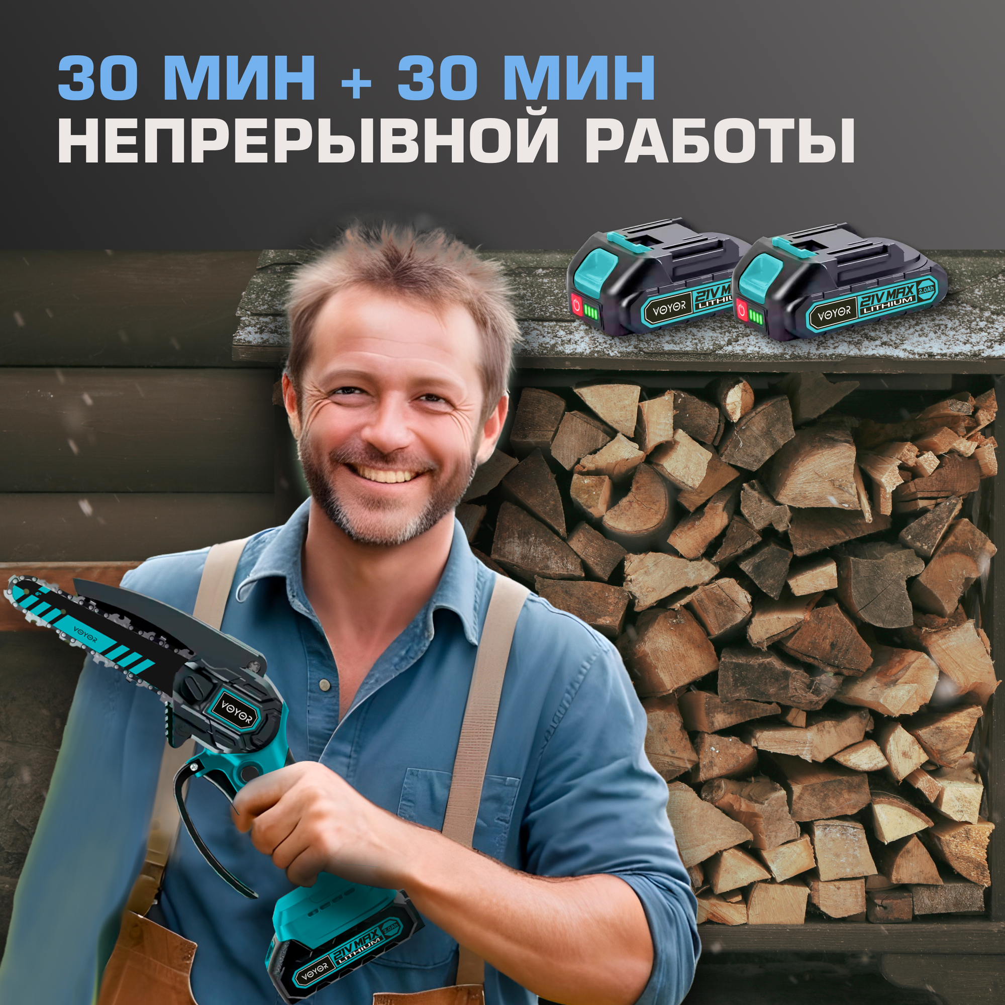 Купить Пила аккумуляторная цепная в кейсе с кожухом, мини-пила мощная