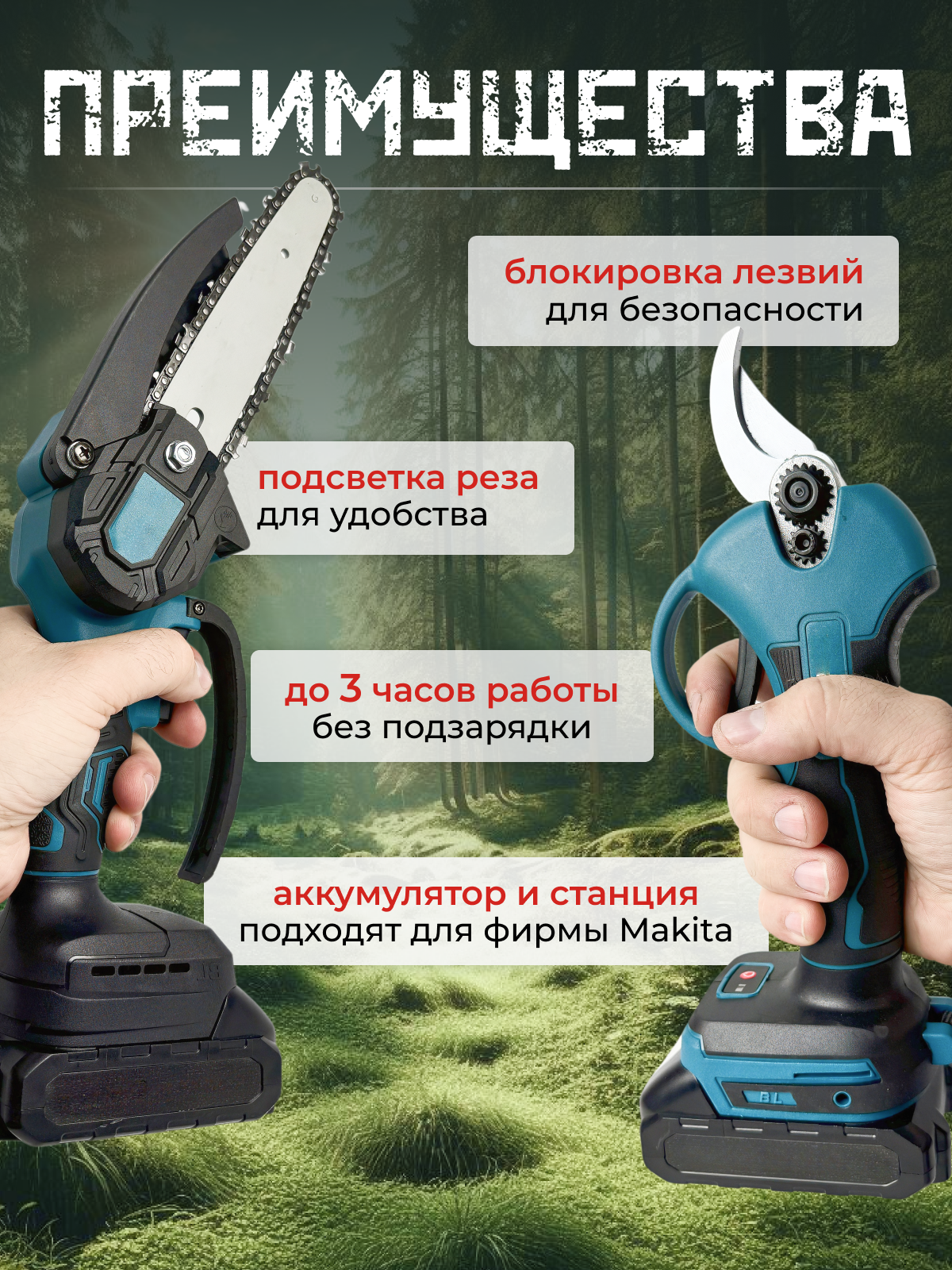 Набор аккумуляторный мини пила и бесщеточный секатор с 2 аккумуляторами интересное:
