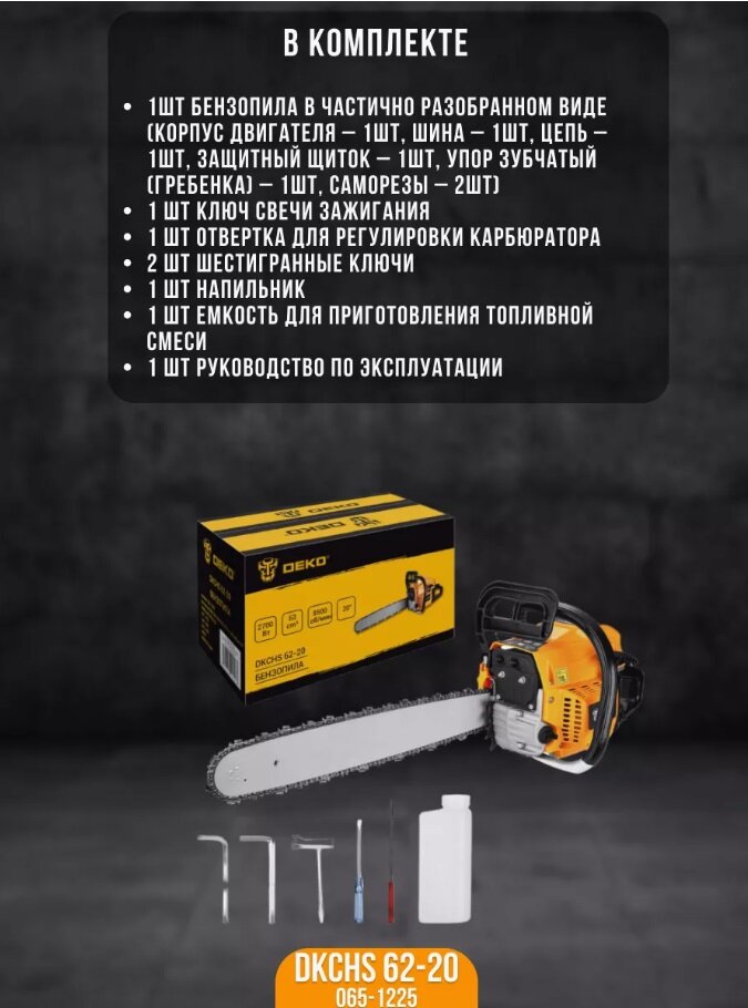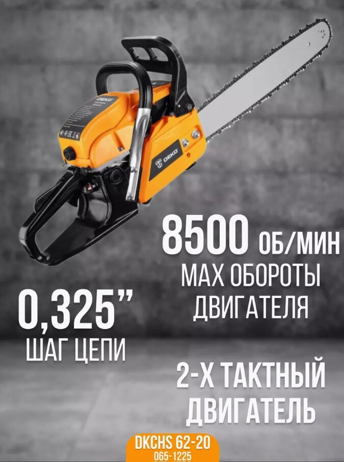 Бензопила Deko Dkchs 62-20, 3,7 л.с., 62 куб.см, 20" 065-1225