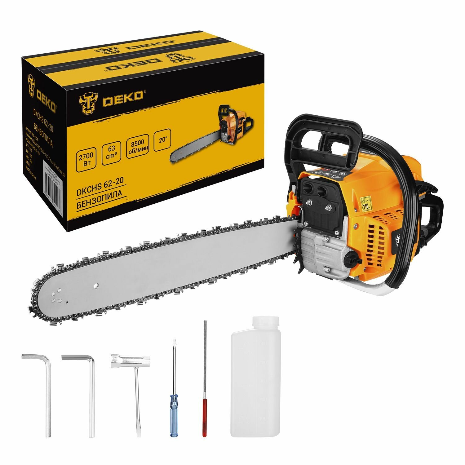 Бензопила Deko DKCHS 62-20, 3.7 л. с, 62 куб. см, 20" (065-1225)