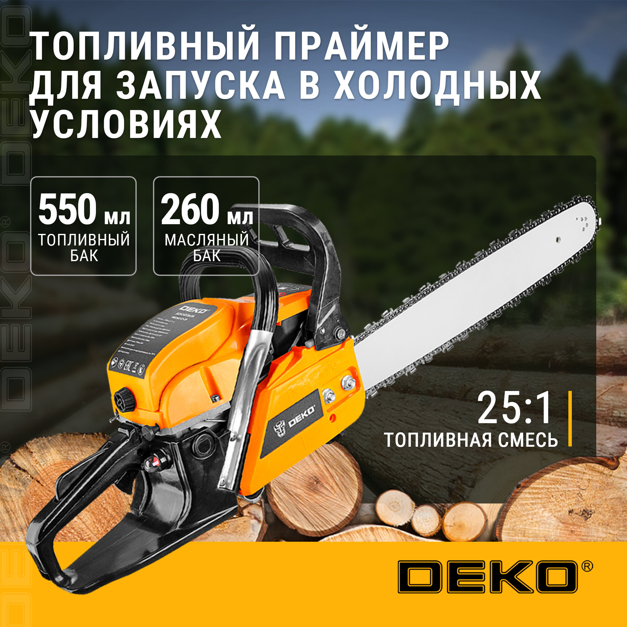 Бензопила DEKO DKCHS 62-20, 3,7 л.с., 62 куб.см, 20" интересное: