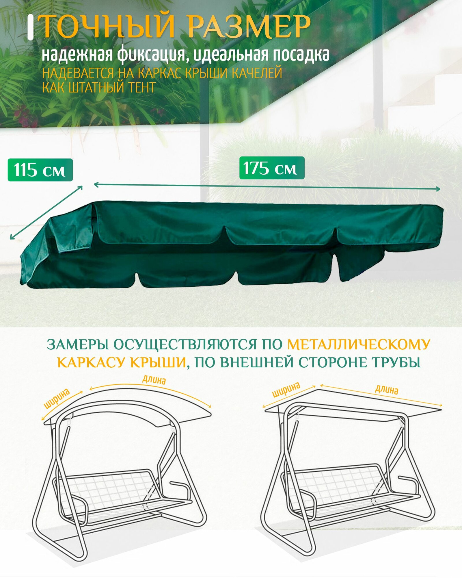 Купить Тент для садовых качелей (175х115 см) зеленый, навес садовый, укрытие для качелей, тент крыша