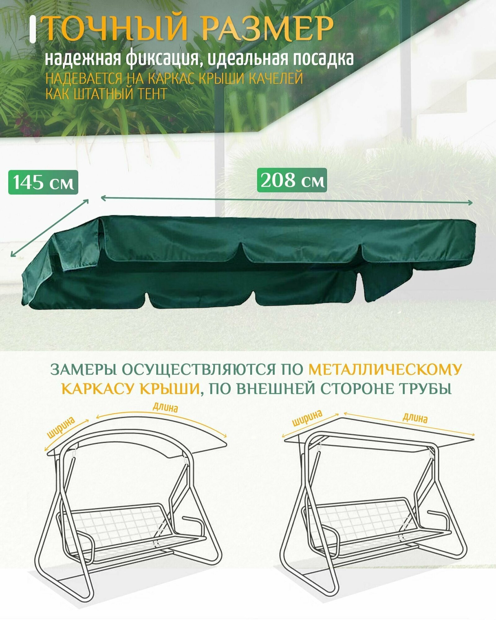 Тент для садовых качелей Сиенна/Орлеан (220х145 см) зеленый, навес садовый, укрытие для качелей, тент крыша